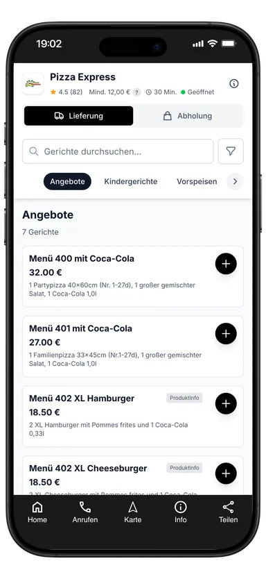 1 Partypizza 40x60cm (Nr. 1-27d), 1 großer gemischter Salat, 1 Coca-Cola 1,0l